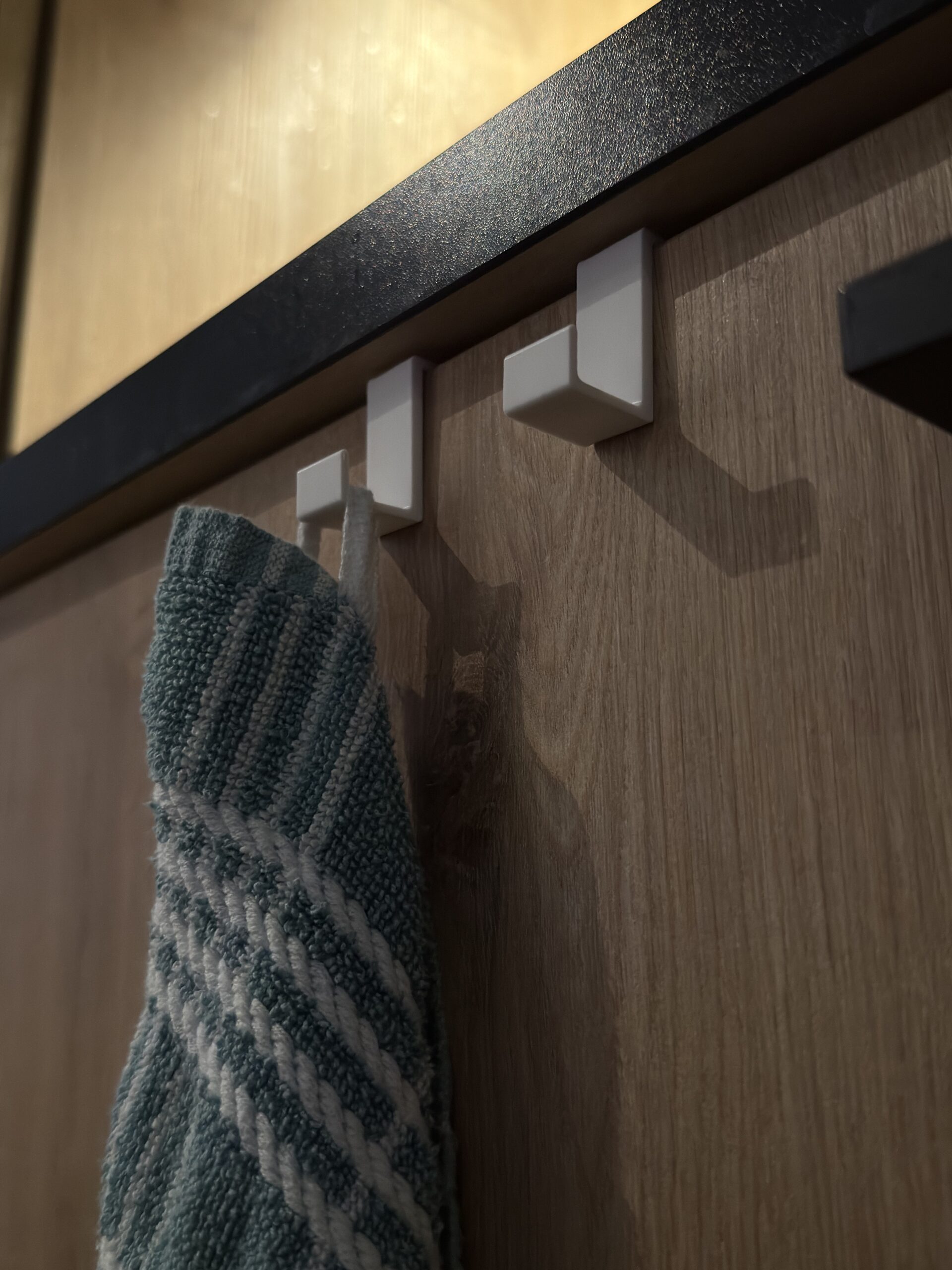 This set of two 3D-printed hooks is designed to fit securely over most standard cabinet and door edges. They’re perfect for hanging towels, utensils, or small bags, helping you make better use of limited space.